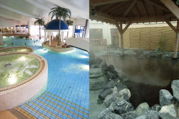 多彩な浴槽と温泉がそそぐ露天風呂と陶器風呂、