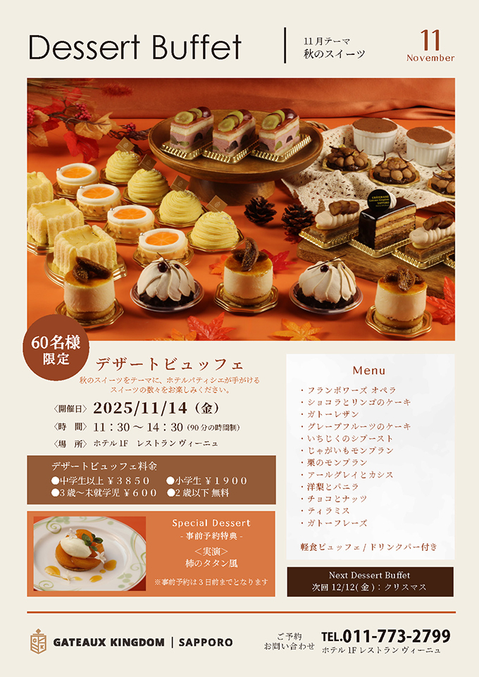 デザートビュッフェが(10月・11月・12月の3回のみ)限定復活!