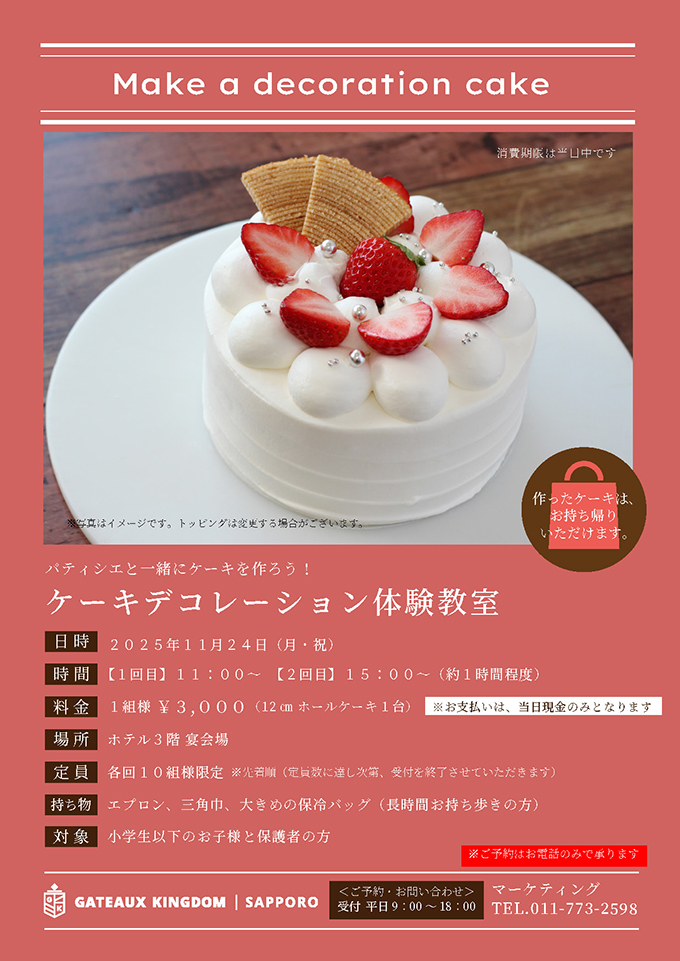<2025/11/24(月・祝)>ケーキデコレーション体験*ご予約受付中!