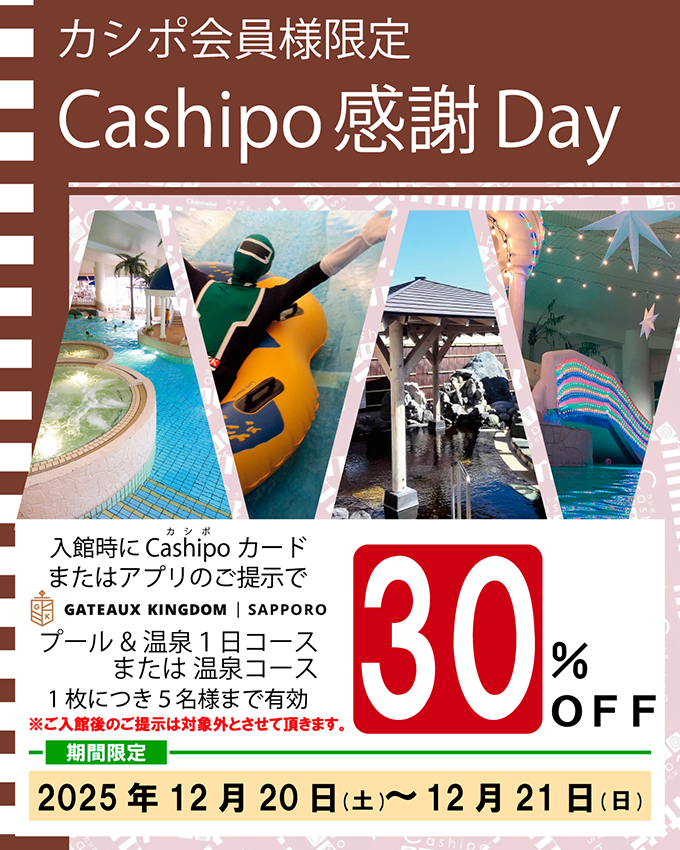 ご入館時にカシポカードまたはアプリ画面をご提示で、下記料金でのご案内となります。