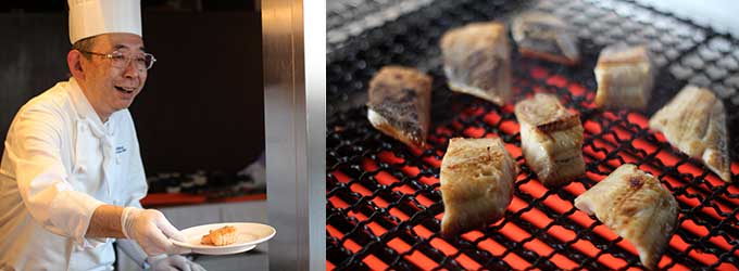 北海道産のホッケを網の上でじっくりと焼き上げます。