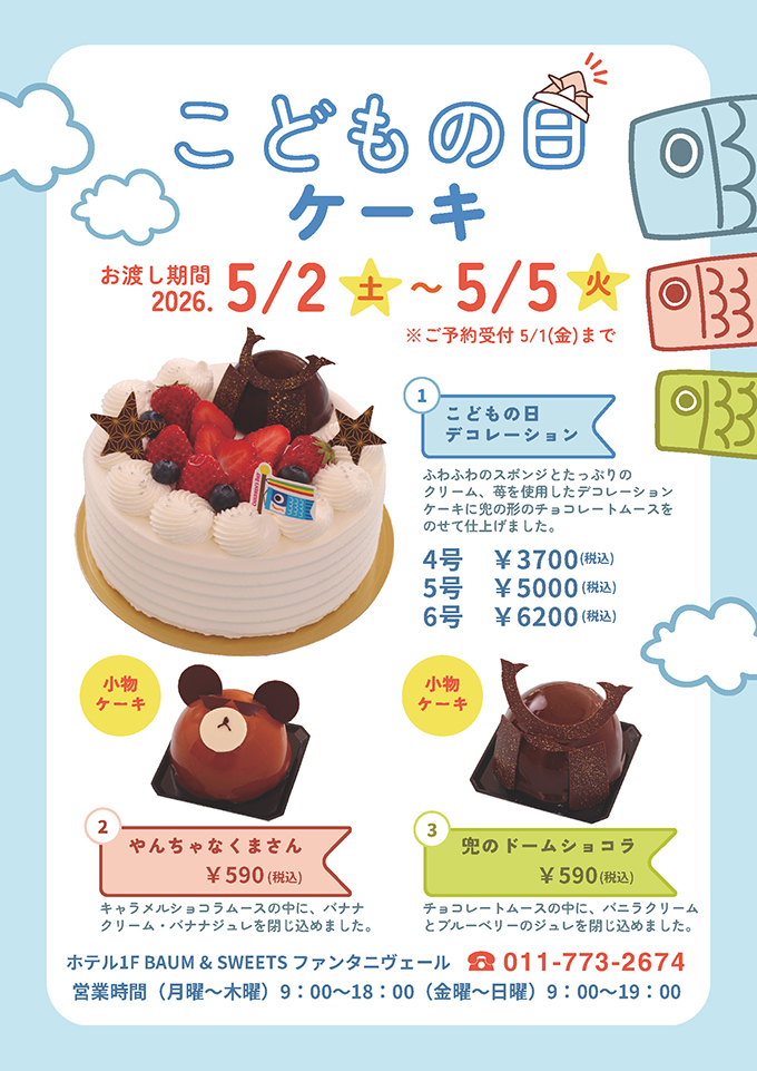 「こどもの日ケーキ」ご予約承り中!(お渡し日:5/2~5/5)